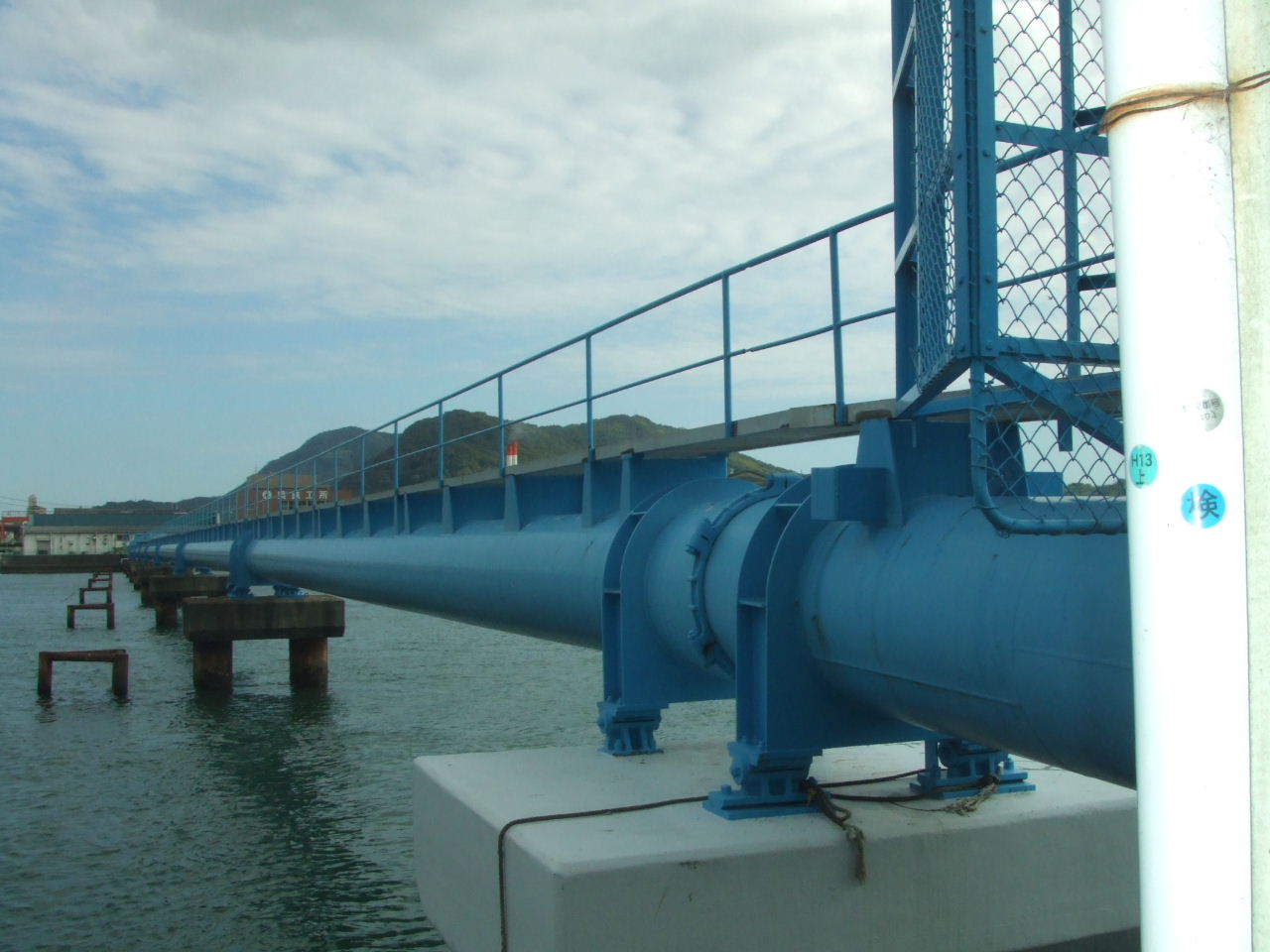 広大橋の南の橋は、鉄橋に送水管!